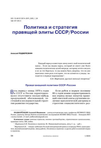 Автор анализирует состояния стратегического планирования и политики в СССР и России в последние десятилетия, качество принимаемых политических решений и правящей элиты СССР/России.
