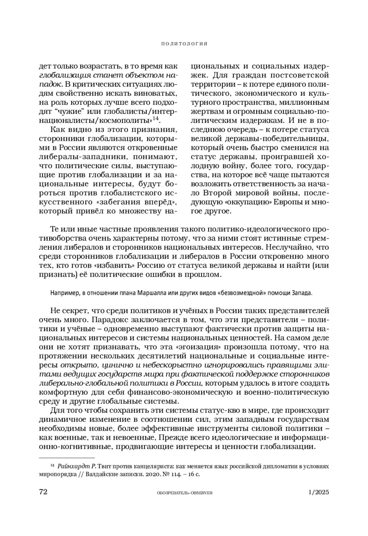 5. Райнхардт Р. Твит против канцеляриста: как меняется язык российской дипломатии в условиях миропорядка // Валдайские записки. 2020. № 114. - 16 с.