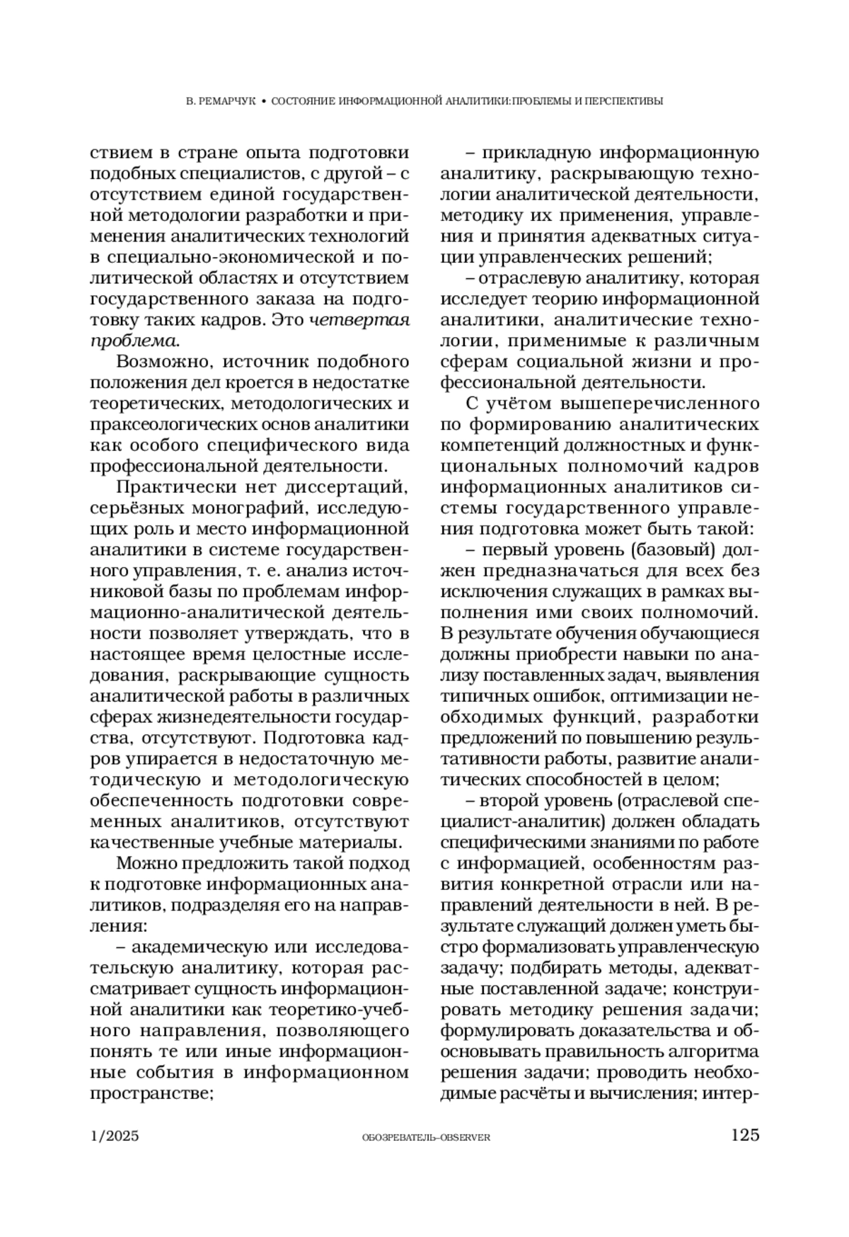Информационная аналитика является важной составляющей трансформации научного познания, которая как дисциплина и способ освоения политической практики находится в состоянии активного развития. Подготовка кадров является одной из важнейших проблем.