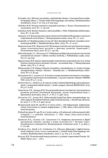 7. Громыко Ал.А. Мировая пересборка: эмпирические данные в концептуальном поиске. Европейский ракурс // Вестник Санкт-Петербургского университета. Международные отношения. 2023. Т. 16. Вып. 3. С. 209-225