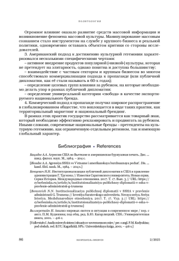 2. Бонцевич Н.Н. Институционализация публичной дипломатии в США в правление администрации Г. Трумэна // Известия Саратовского университета. Новая серия. Серия История. Международные отношения. 2017. Т. 17. Вып. 3 // URL: https://cyberleninka.ru/article/n/institutsionalizatsiya-publichnoy-diplomatii-v-ssha-vpravlenie-administratsii-g-trumena
