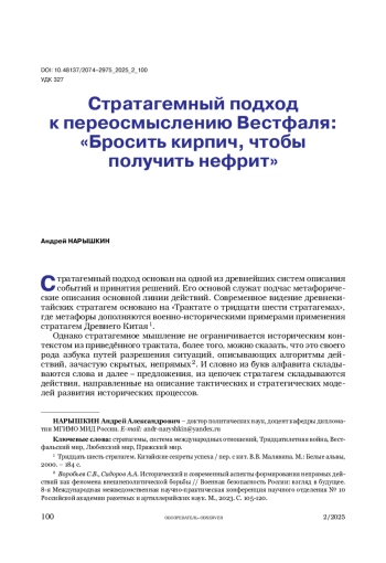 Статья посвящена этапу становления системы международных отношений, оказавшему влияние на последующее развитие правил взаимодействия между государствами. Критически анализируется возникновение и последующее функционирование Вестфальской системы международных отношений за счёт использования стратагемного подхода.