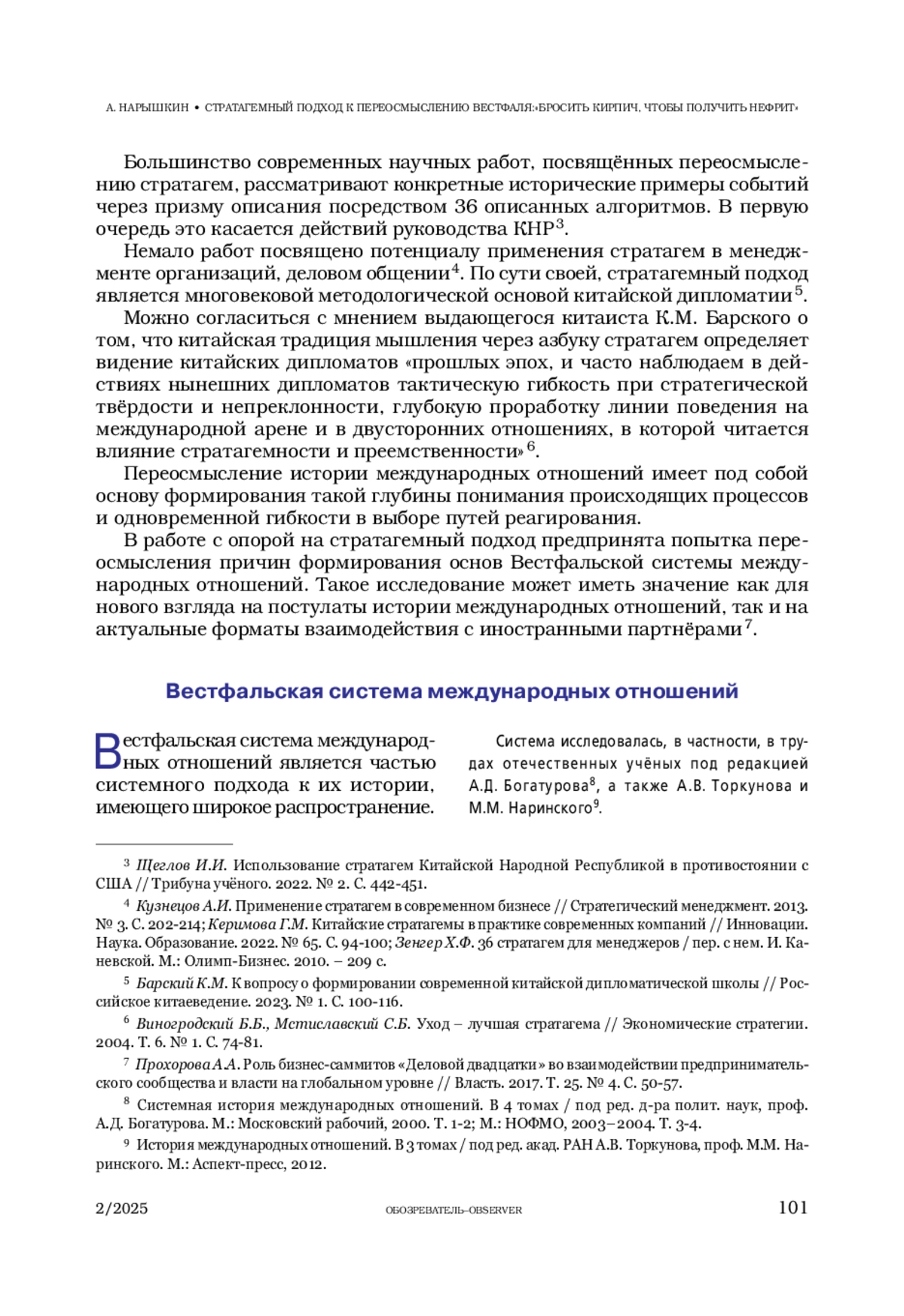 9. Зуйков Р.С. Вестфальская система межгосударственных отношений: критерии и трансформация // Мировая экономика и международные отношения. 2010. № 3. С. 13-27.