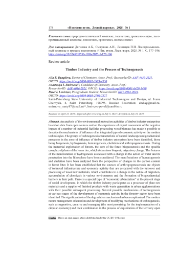 32. Сюнёв В.С., Графова Е.О. Новые технические решения по снижению негативного воздействия лесопромышленных производств на лесную среду // Resources and Technology. 2022. No 19 (1). С. 48-71.