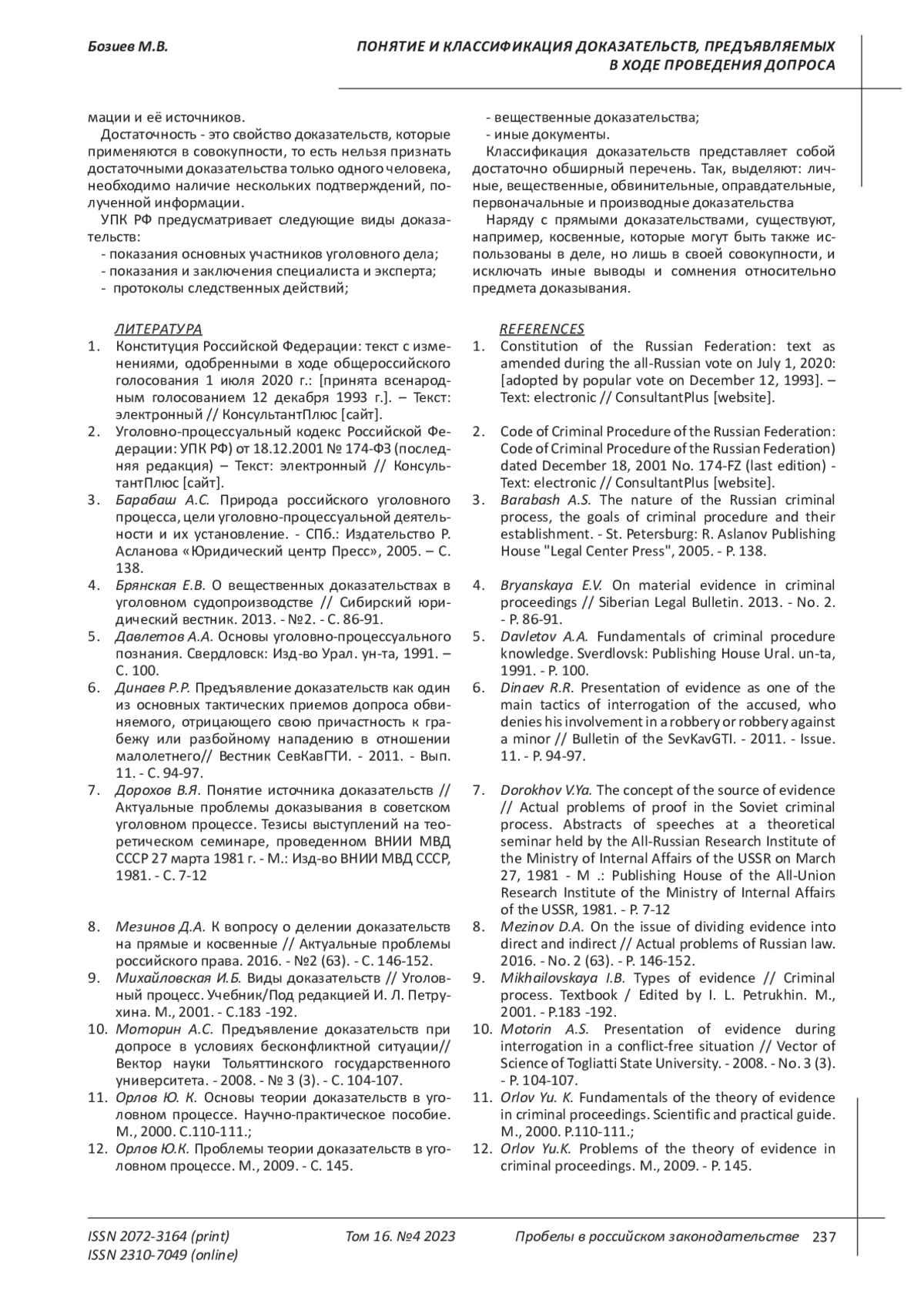 Mikhailovskaya I.B. Types of evidence // Criminal process. Textbook / Edited by I. L. Petrukhin. M., 2001. - P.183 -192.