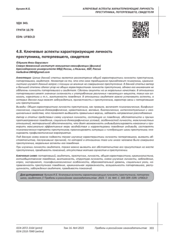 7. Игнатов А.Н. Социально-демографическая и уголовно-правовая характеристика личности современного насильственного преступника // Криминология: вчера, сегодня, завтра. Журнал Санкт-Петербургского международного криминологического клуба. - 2015. - № 4 (39). - С. 93-98. EDN: WCDODZ