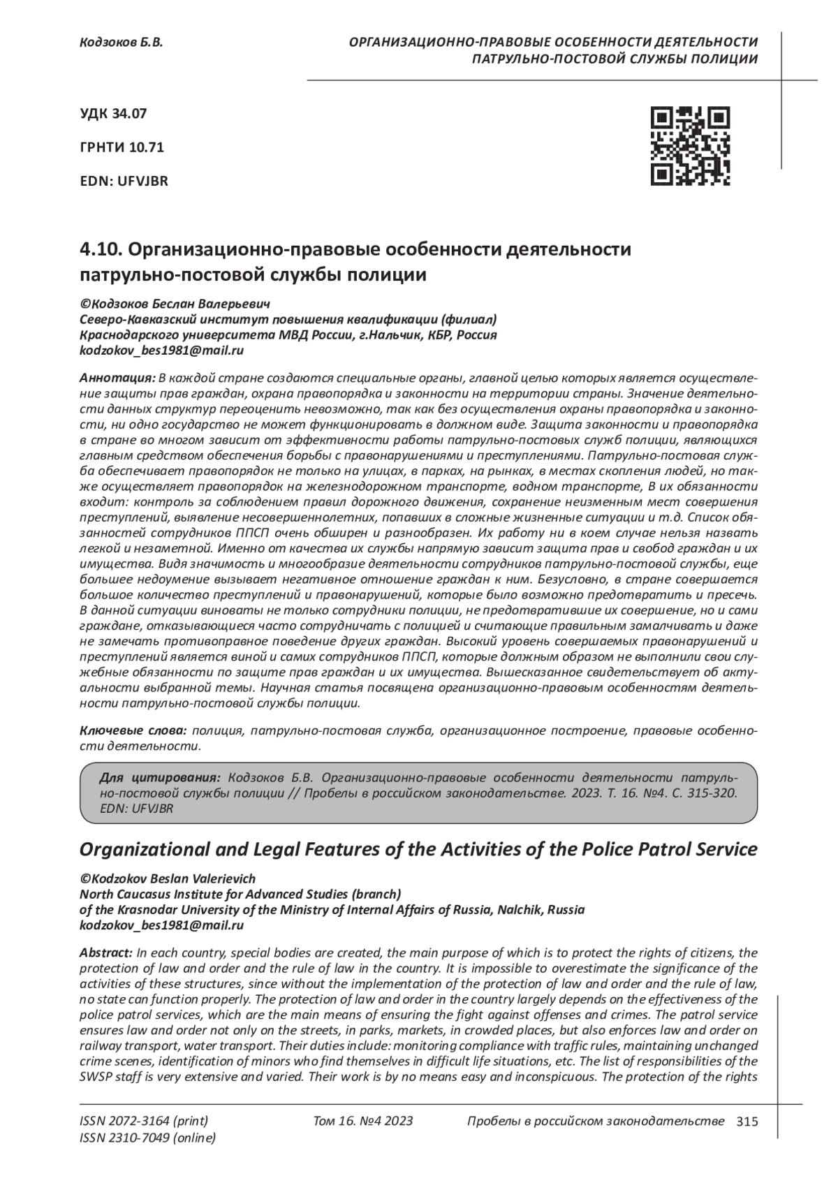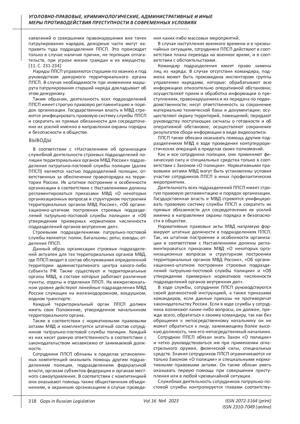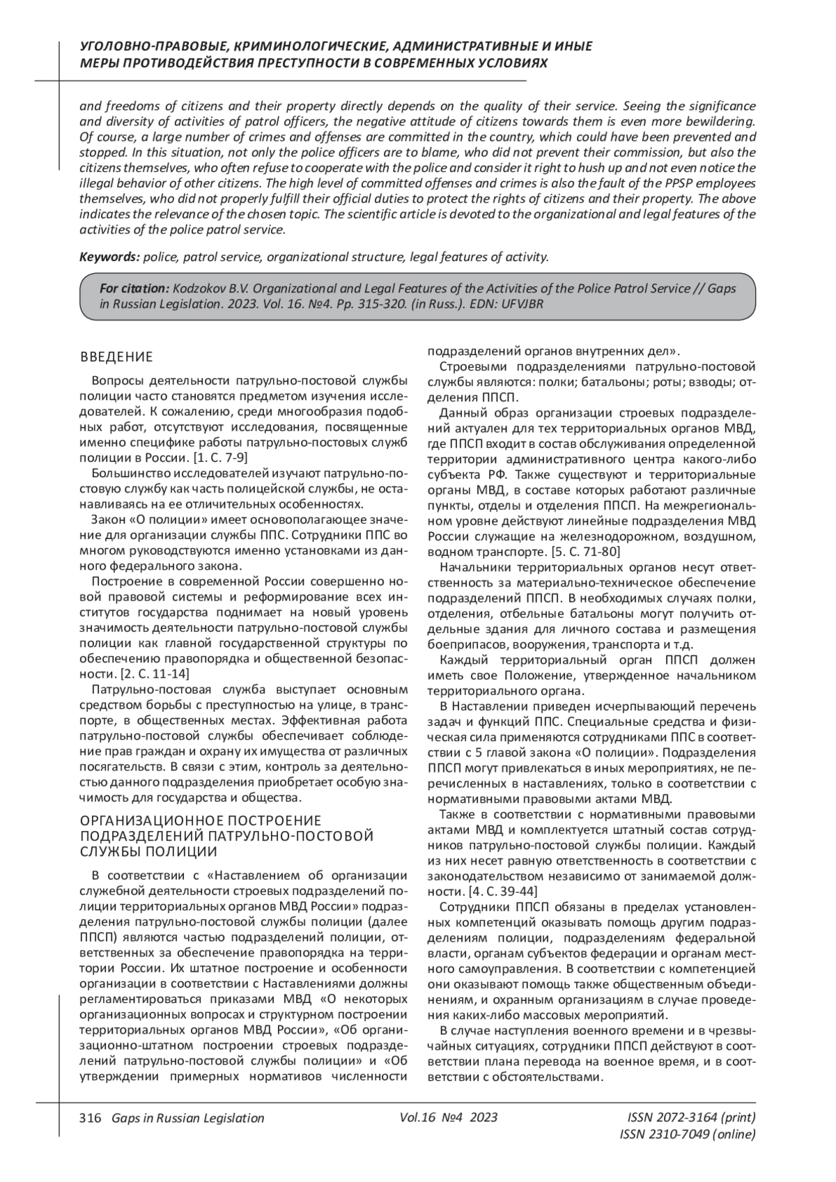 7. Карнаухов О.П. Сравнительный анализ основного нормативного правового акта, регламентирующего деятельность патрульно-постовой службы полиции // Актуальные проблемы борьбы с преступлениями и иными правонарушениями. 2022. № 22. С. 177-179. EDN: FJTQND