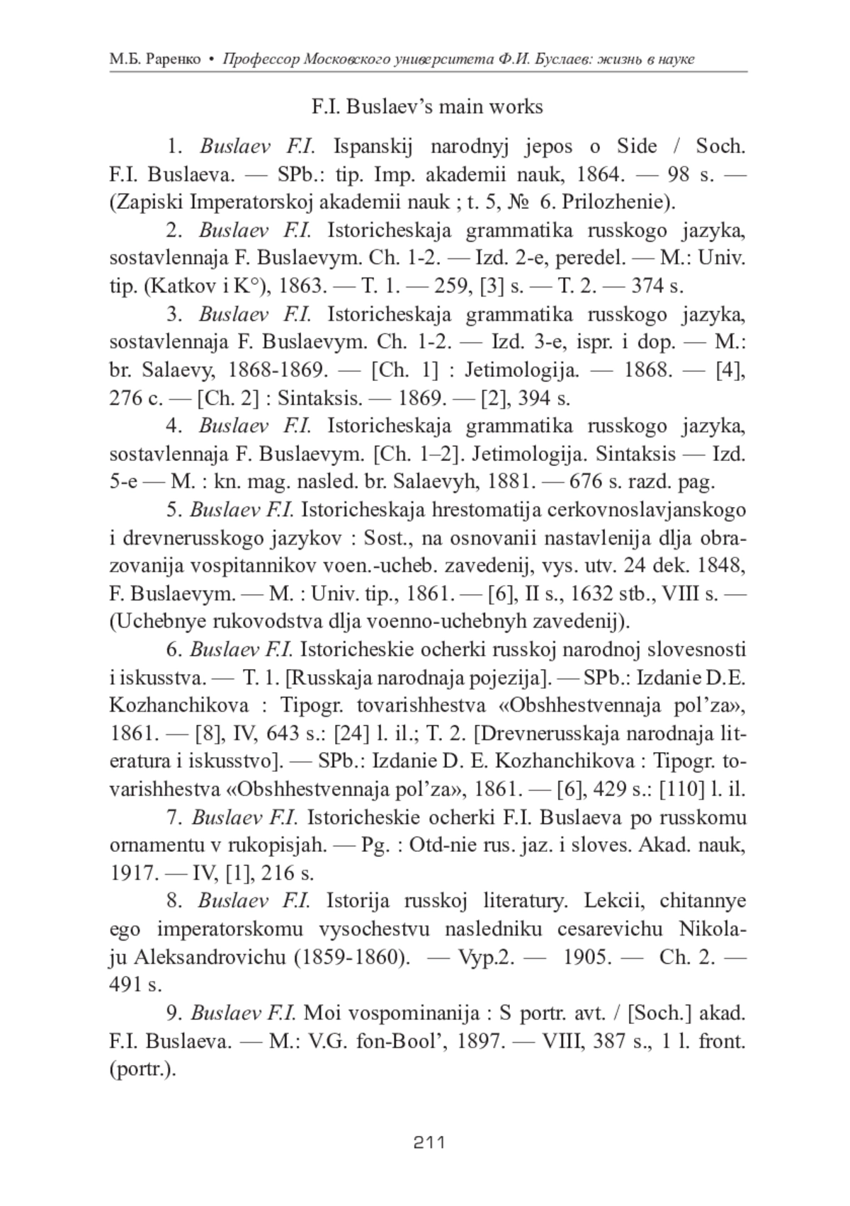 6. Раренко М.Б. Федор Иванович Буслаев: К 200-летию рождения // Литературоведческий журнал. - 2019. - № 45.- С. 116-154. EDN: DDOVHM