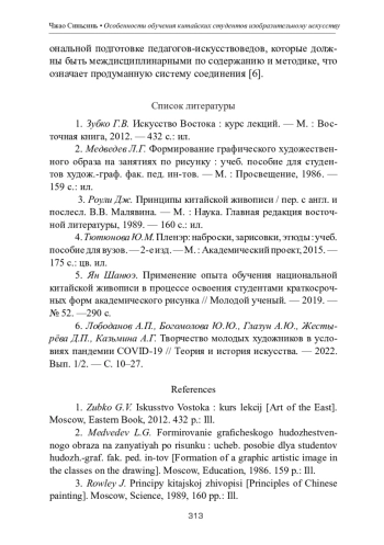 5. Ян Шанюэ. Применение опыта обучения национальной китайской живописи в процессе освоения студентами краткосрочных форм академического рисунка // Молодой ученый. - 2019. - № 52. -290 с.