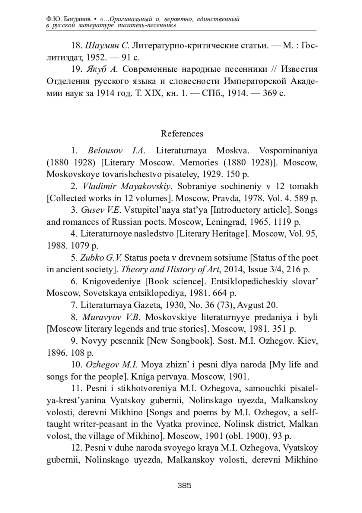 19. Якуб А. Современные народные песенники // Известия Отделения русского языка и словесности Императорской Академии наук за 1914 год. Т. XIX, кн. 1. - СПб., 1914. - 369 с.