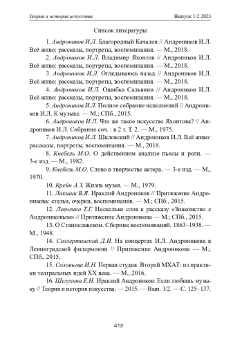 12. Левченко Т.Г. Несколько слов к рассказу “Знакомство с Андрониковым” // Притяжение Андроникова - М.; СПб., 2015.