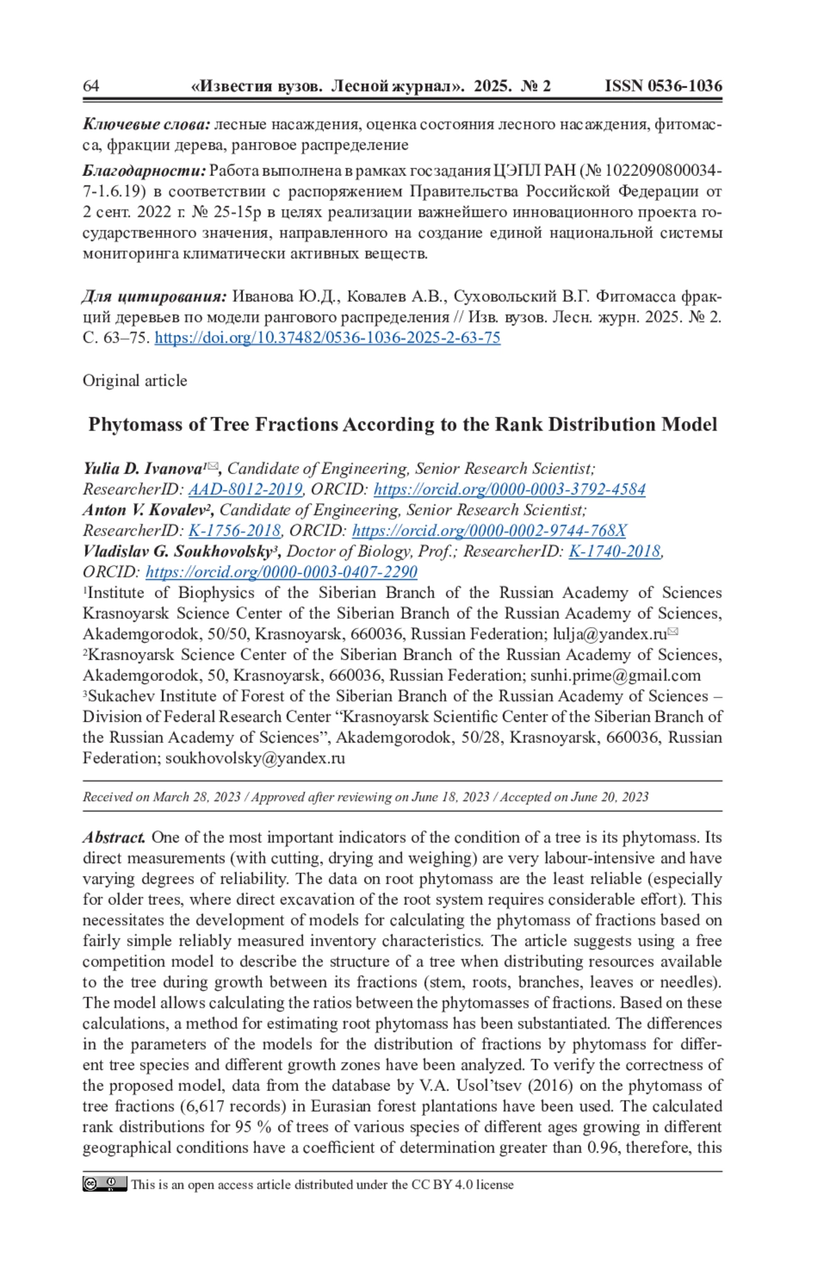 Isaev A.S., Ovchinnikova T.M., Soukhovolsky V.G. Distribution of Phytomass of Trees and Plantations by Fractions: a Competition Model. Problems of Environmental Monitoring and Ecosystem Modeling. St. Petersburg, Gidrometeoizdat Publ., 2007, vol. 21, pp. 232-250. (In Russ.).