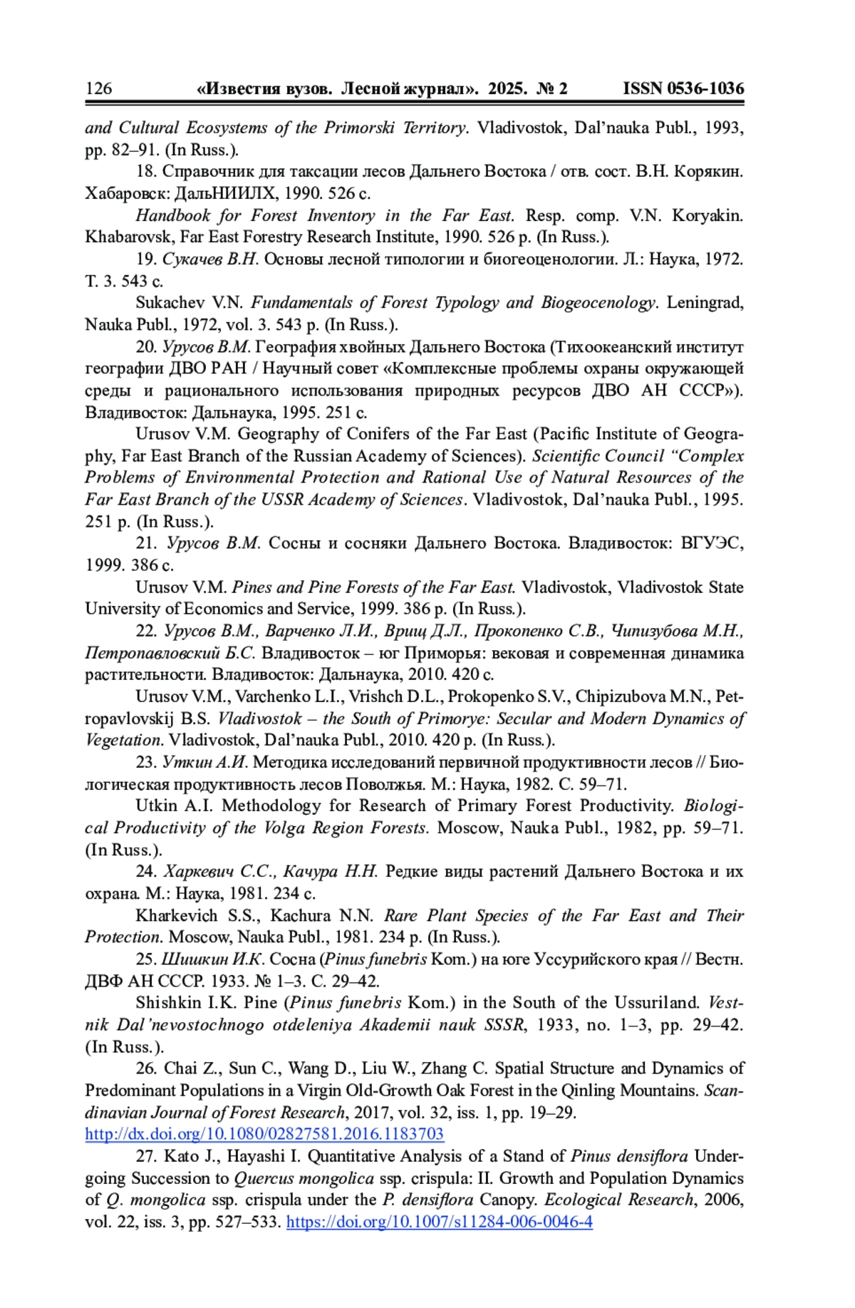 21. Урусов В.М. Сосны и сосняки Дальнего Востока. Владивосток: ВГУЭС, 1999. 386 с.