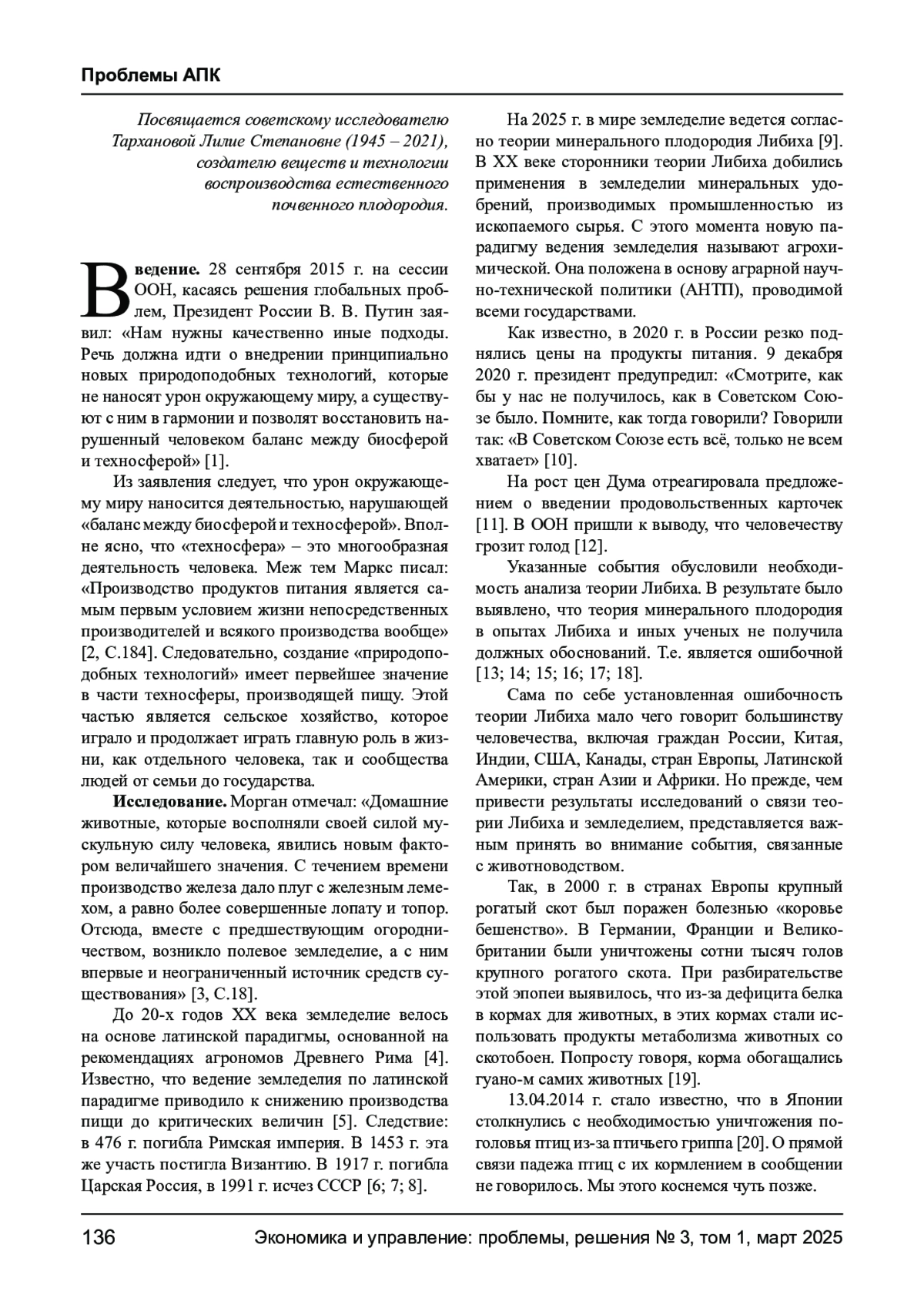 27. Тарханов О. В. Жизнь, пища: что мешает предотвратить голод и войну? // Экономика и управление: проблемы, решения. - 2024. - № 11, том 4. EDN: EDUANI