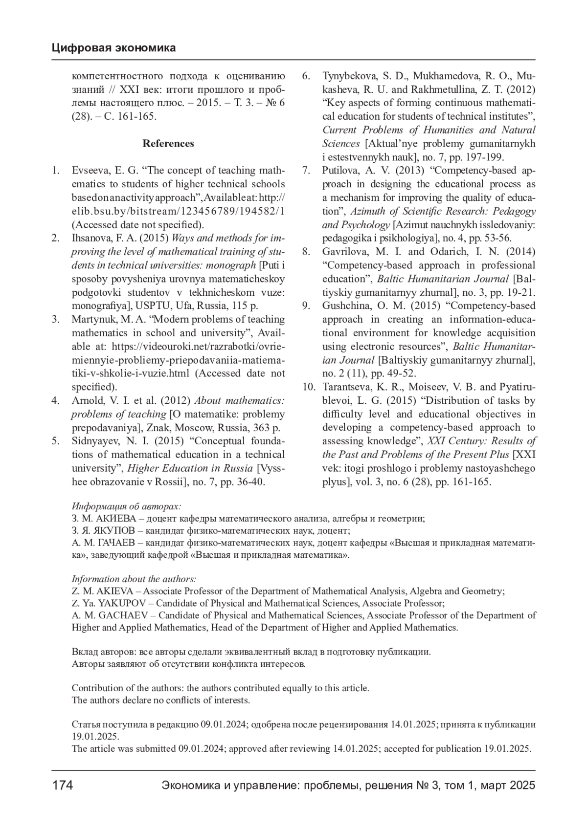 5. Сидняев Н. И. Концептуальные основы математического образования в техническом вузе // Высшее образование в России. - 2015. - № 7. - С. 36-40. EDN: UFGRSN