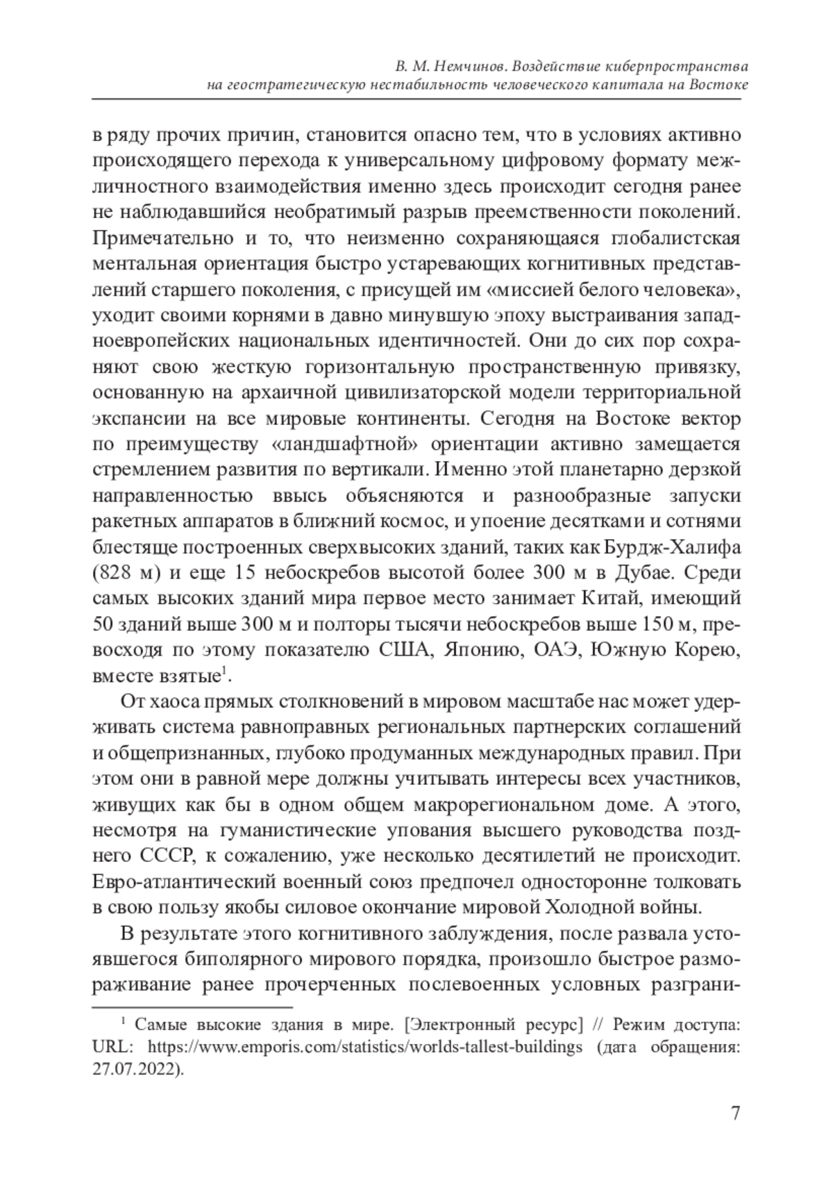 9. Немчинов В. М. Изменение экономической, геополитической и коммуникационно-технологической конфигурации глобализации // Страны Востока и Россия в глобальных процессах (раздел 1.2): коллективная монография / Ин-т востоковедения РАН; [отв. ред., сост., предисл. И. В. Дерюгина]. - М.: ИВ РАН, 2022.