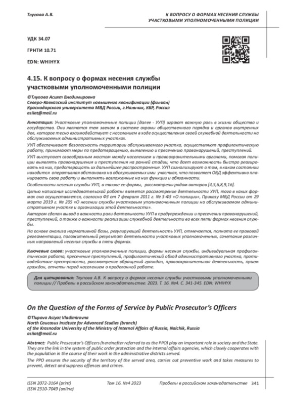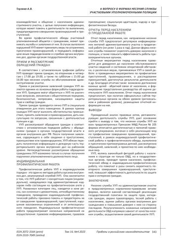 4. Антонов Н.И., Бирюков В.В. Актуальные вопросы организации приема граждан участковыми уполномоченными полиции // Академическая мысль. 2021. № 3 (16). С. 126-130. EDN: TEJEZP
