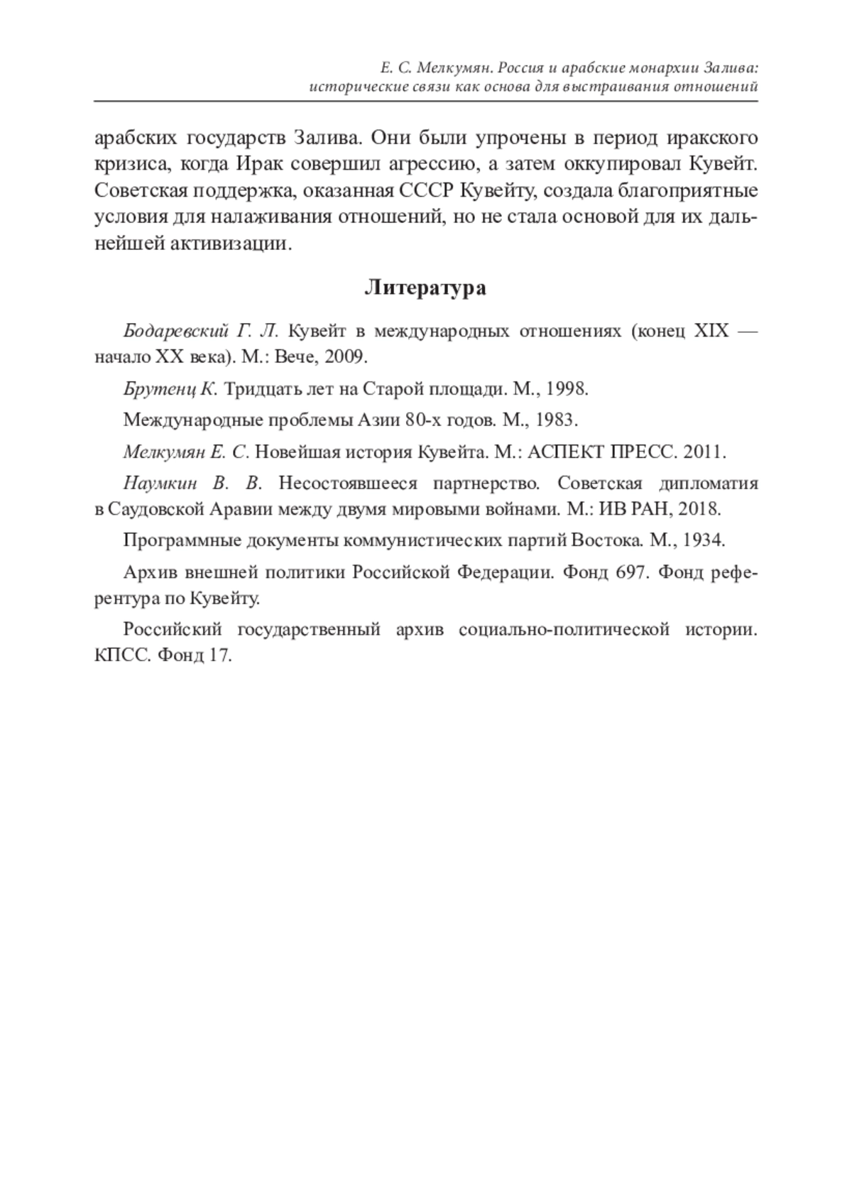 4. Мелкумян Е. С. Новейшая история Кувейта. М.: АСПЕКТ ПРЕСС. 2011. EDN: RWTBRX