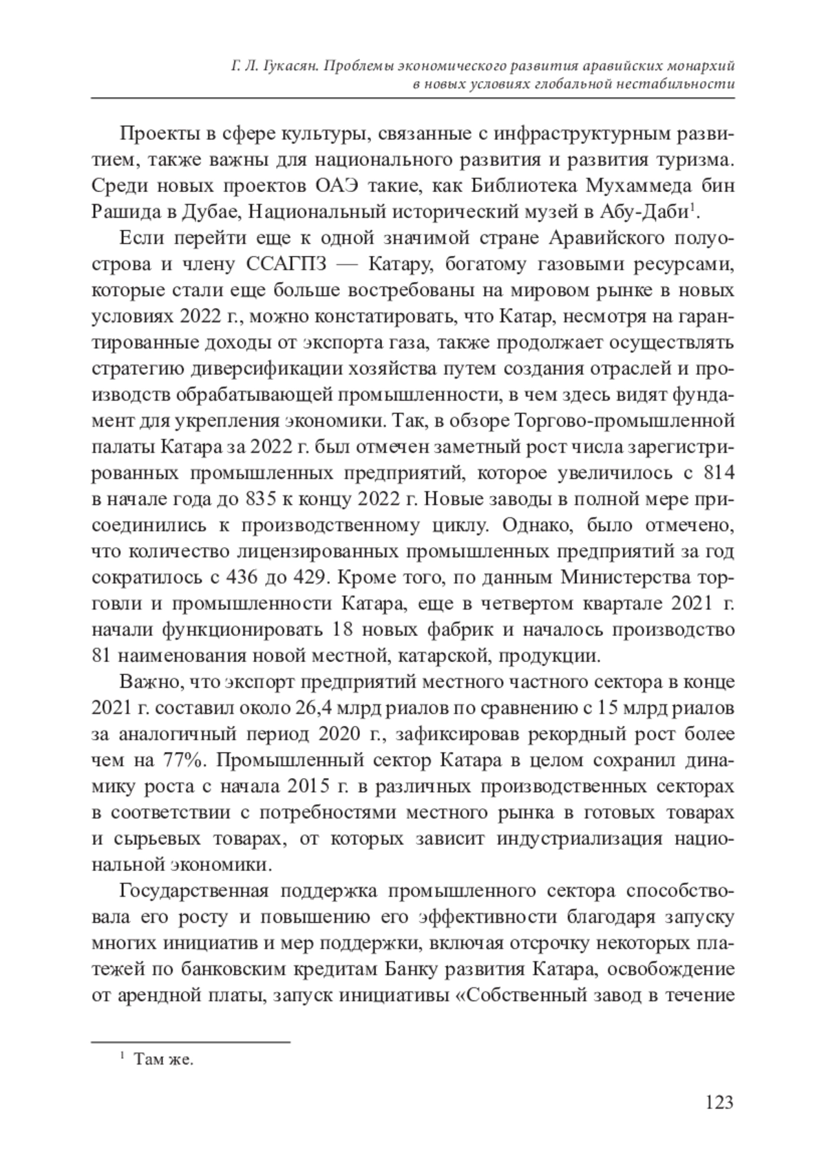 В рамках восстановления и стабилизации национальных экономик от последствий пандемии COVID-19 нефтеэкспортирующие страны — члены Совета сотрудничества арабских государств Персидского залива (ССАГПЗ) — восстанавливают основные параметры экономического роста и диверсификации хозяйства в новых условиях 2021–2022 гг., также отличающихся нестабильными характеристиками состояния мировой экономики. В данном материале экономические проблемы стран ССАГПЗ рассматриваются по состоянию на четвертый квартал 2022 г. Среди факторов нестабильности, оказывающих воздействие на экономическое положение в аравийских монархиях, прежде всего неоднозначные тенденции мирового экономического роста и проблемы неустойчивой конъюнктуры мирового рынка нефти. В этой связи страны ССАГПЗ стремятся найти внутренние резервы экономической и финансовой диверсификации, одновременно учитывая внешнеэкономические доминанты.