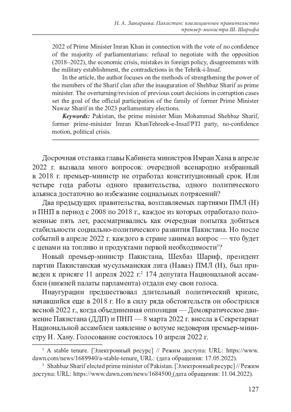 2. Shahbaz Sharif elected prime minister of Pakistan. [Электронный ресурс] // Режим доступа: URL: https://www.dawn.com/news/1684500 (дата обращения: 11.04.2022).