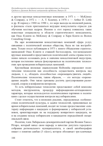 Демократизация японского общества после Второй мировой войны открыла путь для представителей различных политических сил Японии, которые вышли на политическую арену и стали бороться за внимание и поддержку избирателей. Со временем политические партии и политики стали использовать в своей борьбе особые политические технологии. В их задачу входит организовывать конкретные избирательные кампании с привлечением средств массовой информации, Интернета, социальных сетей, социологических опросов, а также прорабатывать тактику и стратегию конкретных действий на весь период выборов. Таким образом, политические и избирательные технологии являются важной частью политического процесса в Японии, и в частности находят свое активное применение в политической конкуренции японских политиков.