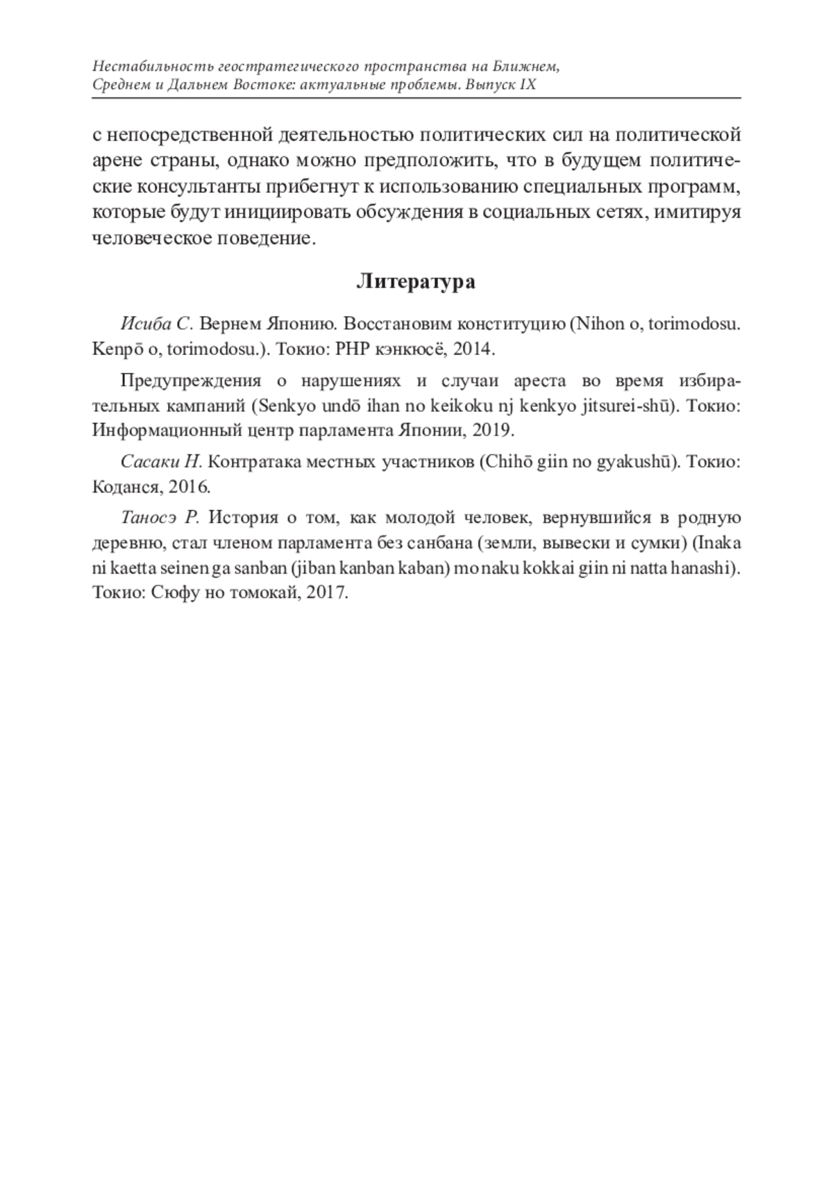 3. Сасаки Н. Контратака местных участников (Chihō giin no gyakushū). Токио: Коданся, 2016.