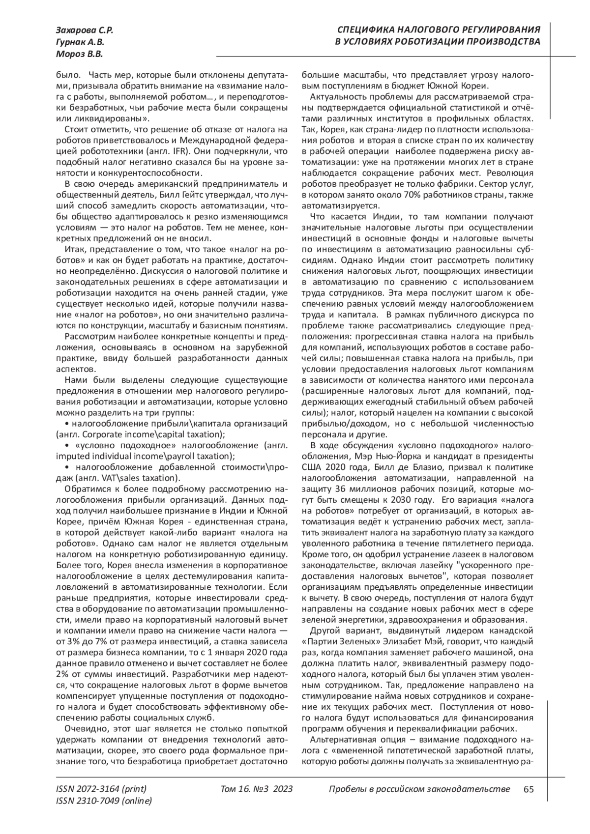 5. Abbott R. and Bogenschneider B. Should Robots Pay Taxes? Tax Policy in the Age of Automation // Harvard Law & Policy Review - 2018 - pp. 146-175.