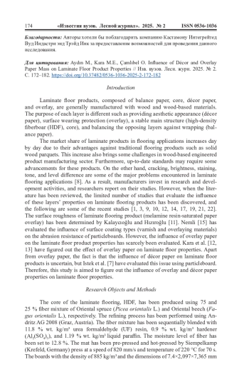 12. Kara M.E., Ayrilmis N., Uncu A. Effect of Overlay Paper Properties on the Surface Quality of Laminate Flooring. Machines. Technologies. Materials, 2022, vol. 16, iss. 6, pp. 199-201.