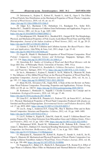 21. Farrokhpayam S.R., Shahabi M.A., Sheshkal B.N., Gargari R.M. The Morphology, Physical, and Mechanical Properties of Poly (Lactic Acid)-Based Wood Flour and Pulp Fiber Biocomposites. Journal of the Indian Academy of Wood Science, 2021, vol. 18, pp. 20-25. DOI: 10.1007/s13196-021-00274-4 EDN: RVMYGQ