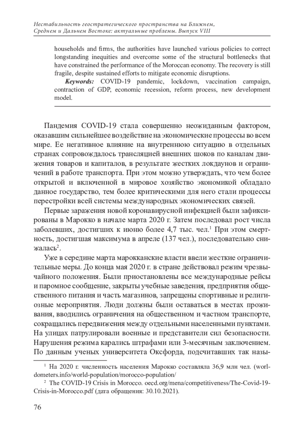2. The COVID-19 Crisis in Morocco oecd.org/mena/competitiveness/The-Covid-19-Crisis-in-Morocco.pdf (дата обращения: 30.10.2021).
