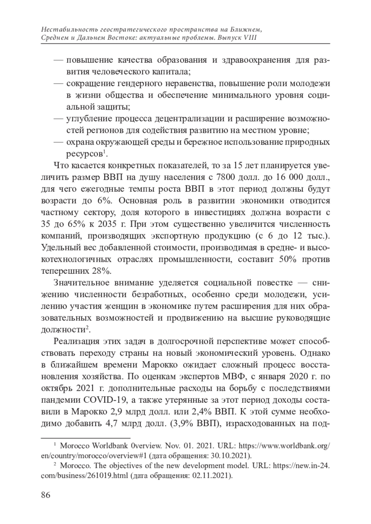 5. Morocco Economic Monitor: Building Momentum for Reform. Spring 2021. P. 2. https://www.worldbank.org/en/country/morocco/publication/morocco-economicmonitor-building-momentum-for-reform (дата обращения: 30.10.2021).