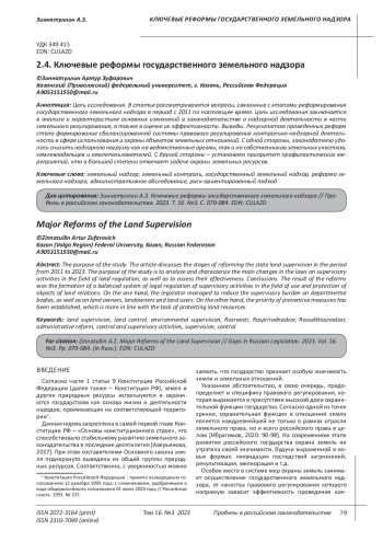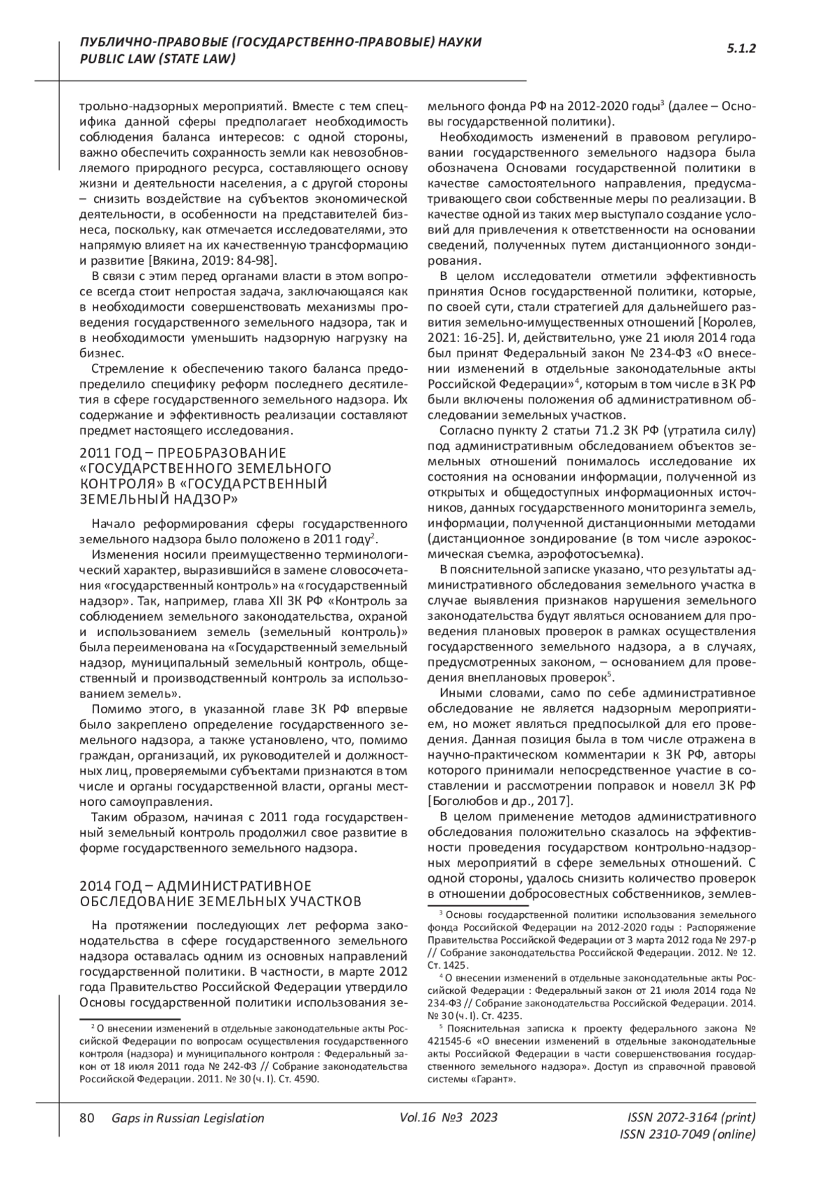 Korolev S.Y. Land Supervision: Transformation in the Light of the State Policy on the Use of the Land Fund of the Russian Federation / ed. S.Y. Korolev // Legal Policy and Legal Life. 2021. № 2. Pp. 16-25. EDN: AUTODP