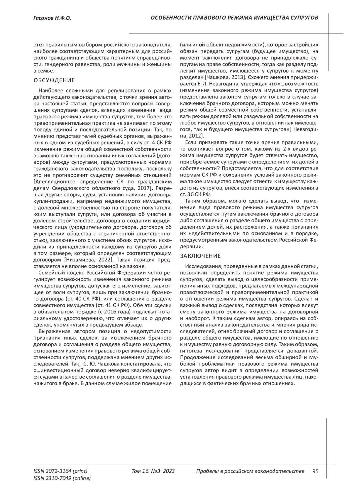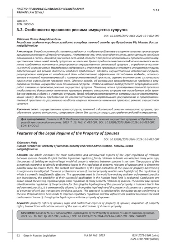 4. Низамиева О.Н. Развитие правоприменительной практики по вопросу о правовом режиме супружеского имущества в договорах с участием супругов // LEX RUSSICA. 2022. Т.75, №8 (189). С.130-138. EDN: DXHLBP