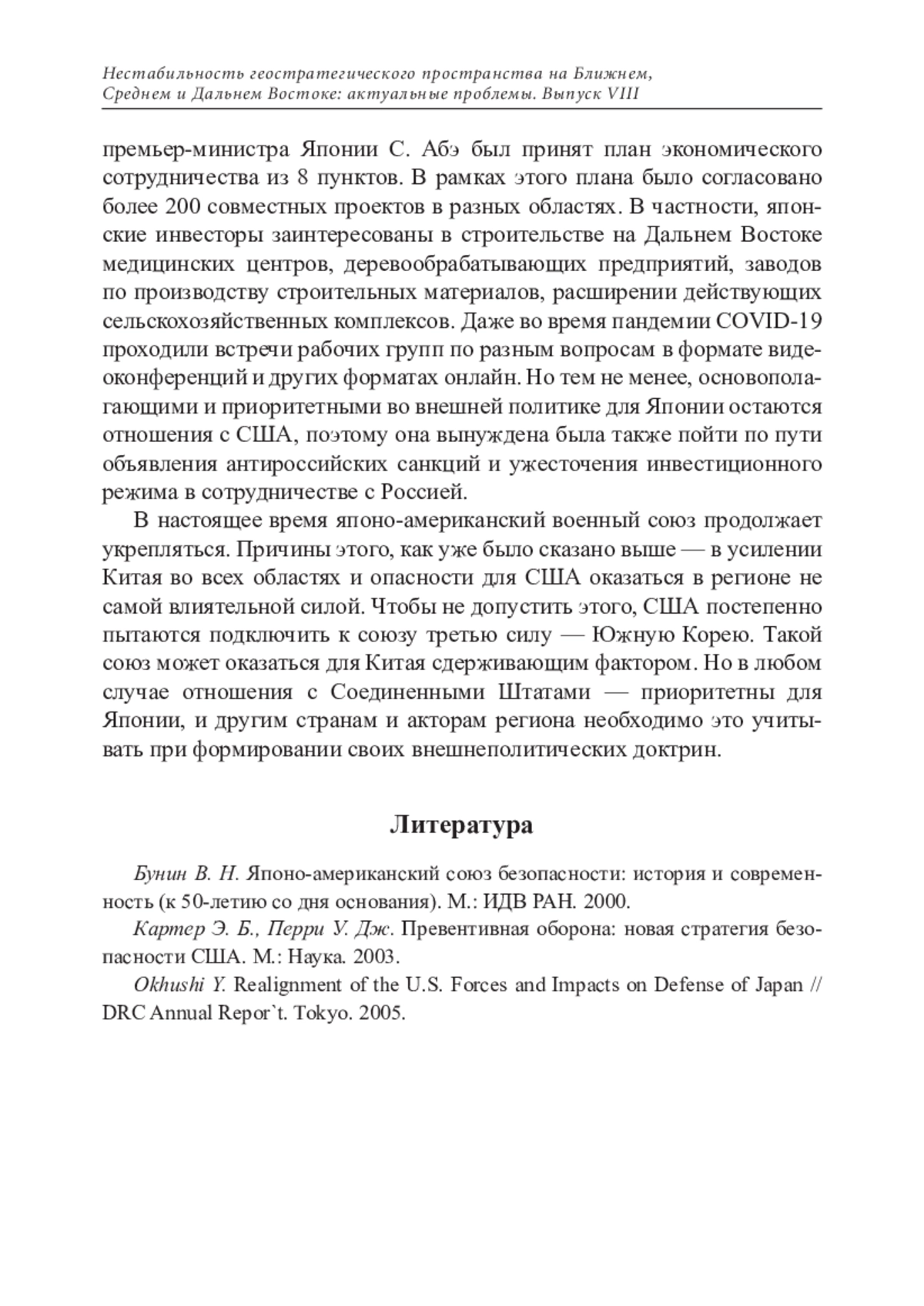 3. Okhushi Y. Realignment of the U.S. Forces and Impacts on Defense of Japan // DRC Annual Repor’t. Tokyo. 2005.
