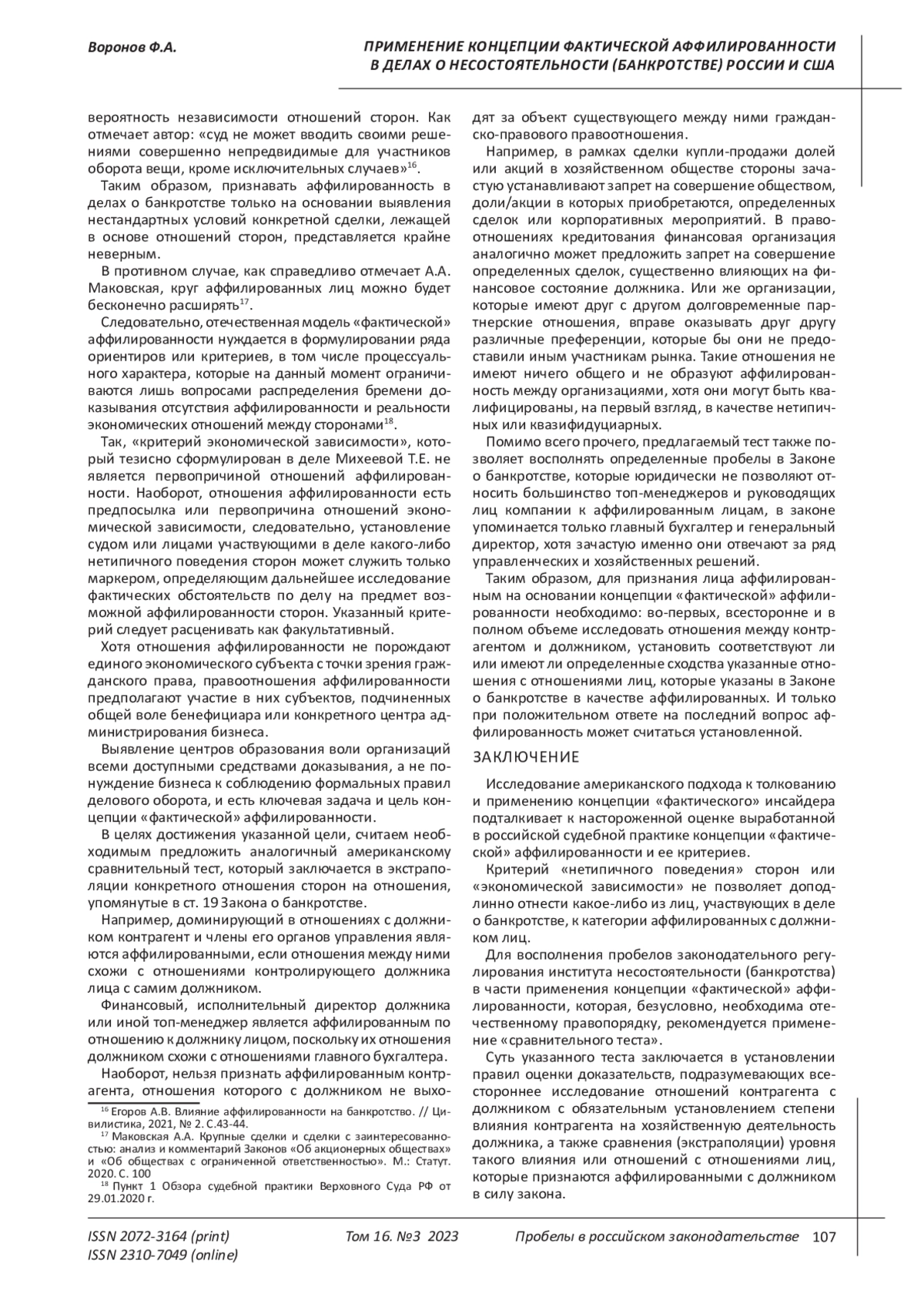 4. Егоров А.В. Влияние аффилированности на банкротство. Цивилистика, 2021, № 2. С.67. EDN: NUIIPY