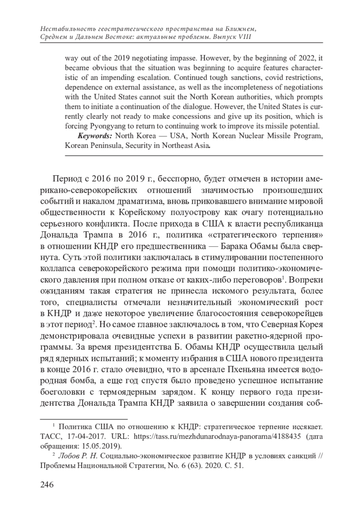 4. Лобов Р. Н. Социально-экономическое развитие КНДР в условиях санкций // Проблемы национальной стратегии. 2020.No. 6 (63).