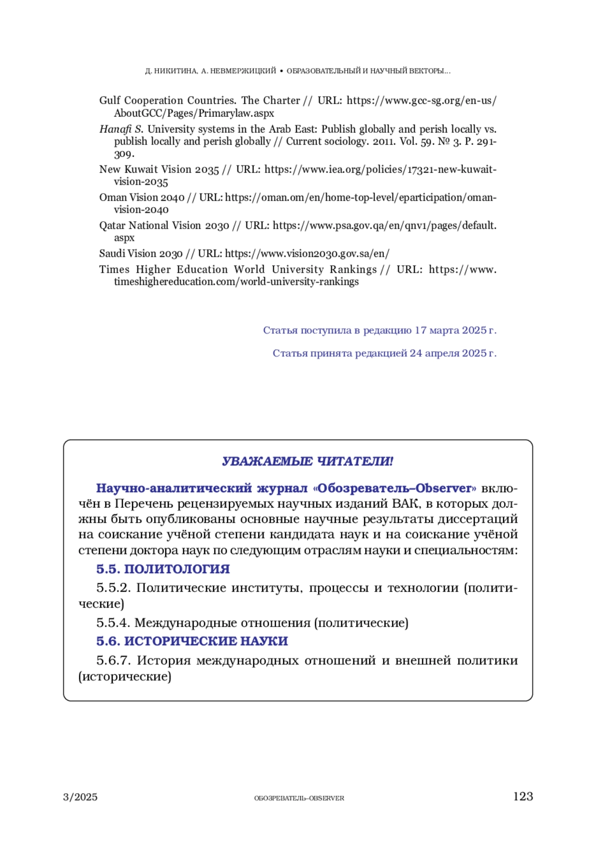 8. Hanafi S. University systems in the Arab East: Publish globally and perish locally vs. publish locally and perish globally // Current sociology. 2011. Vol. 59. № 3. Р. 291-309.