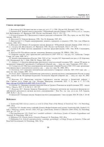 Важной задачей земских учреждений второй половины XIX – начала XX века было формирование земских бюджетов, в которых существенную роль играли расходные статьи, необходимые для обеспечения местных потребностей населения. В настоящий момент одним из неизученных вопросов являются уездные земские расходы Вологодской губернии во второй половине XIX – начале XX ве- ка. В современных условиях особенно актуальным становится обращение к опыту самофинансирования земских учреждений для решения региональных проблем расходования денежных средств.