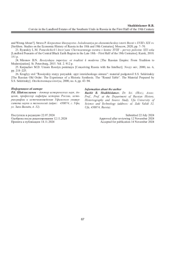 20. Шайхисламов Р.Б. Южноуральское крестьянство: XVII - середина XIX в.: моногр. Уфа: РИЦ БашГУ, 2018. 245 с. EDN: YNXUAX