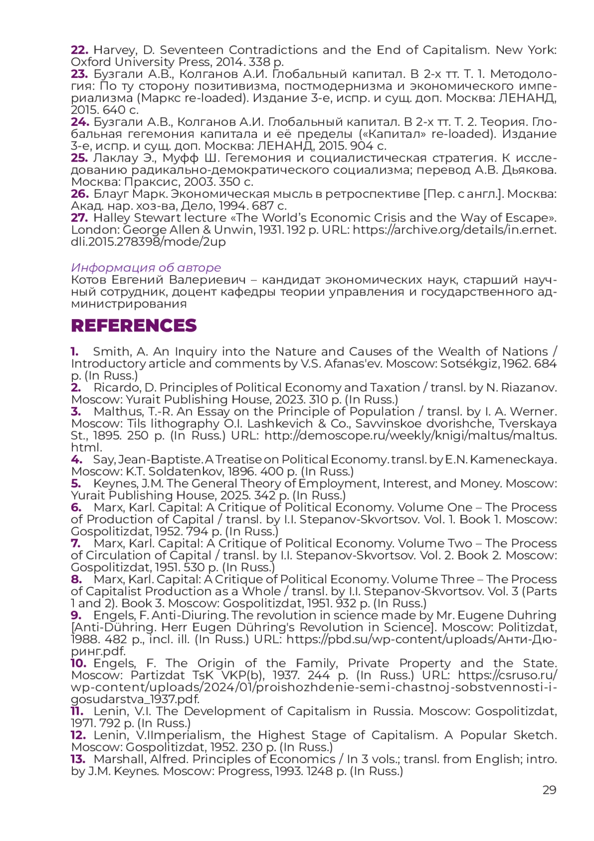 24. Бузгали А.В., Колганов А.И. Глобальный капитал. В 2-х тт. Т. 2. Теория. Глобальная гегемония капитала и её пределы (“Капитал” re-loaded). Издание 3-е, испр. и сущ. доп. Москва: ЛЕНАНД, 2015. 904 с.