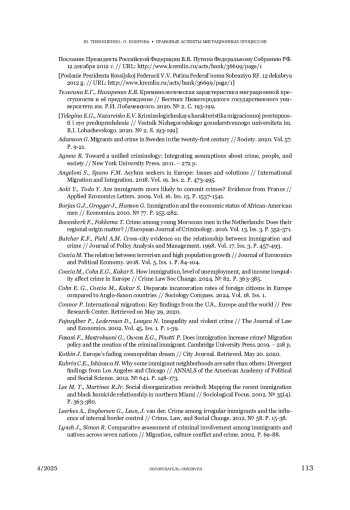 8. Aoki Y., Todo Y. Are immigrants more likely to commit crimes? Evidence from France // Applied Economics Letters. 2009. Vol. 16. Iss. 15. Р. 1537-1541.