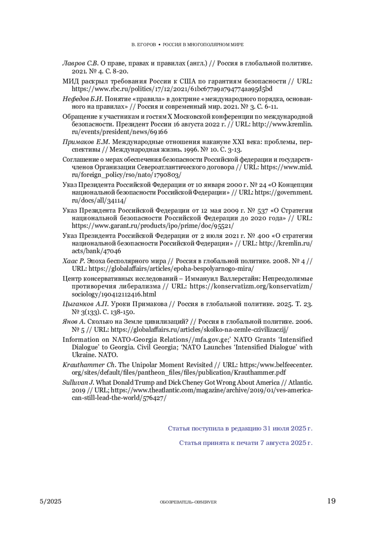 20. Цыганков А.П. Уроки Примакова // Россия в глобальной политике. 2025. Т. 23. № 3(133). С. 138-150.