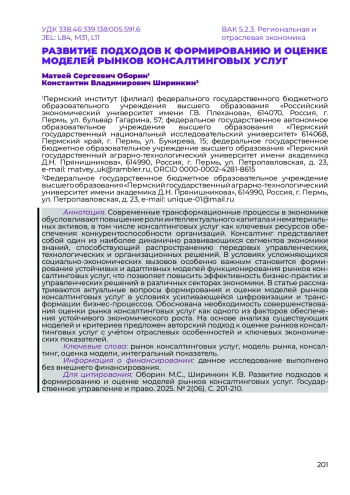 15. Сорокин А.В. Рынок консалтинговых услуг в условиях неопределённости // Экономика, предпринимательство и право. 2024. Т. 14, № 3. С. 977-989.