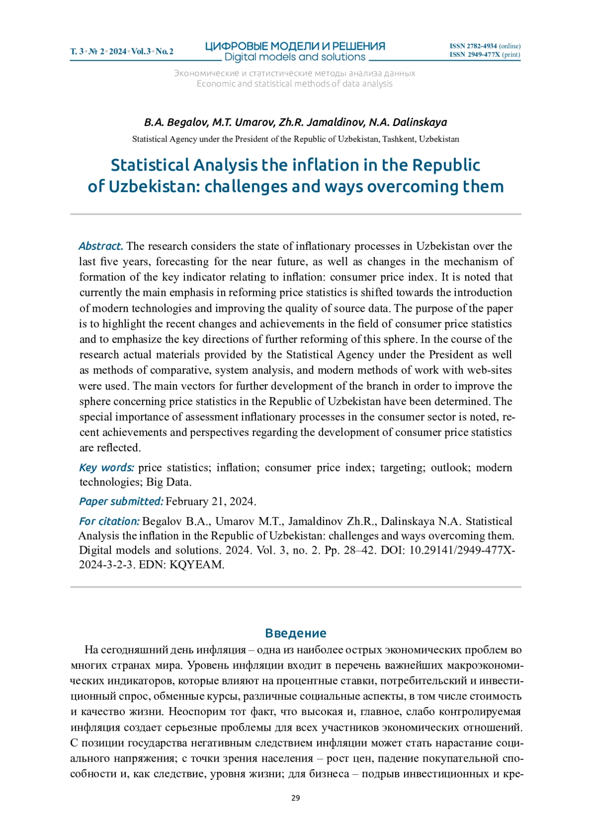 В статье рассматривается состояние инфляционных процессов в Узбекистане на протяжении пяти последних лет, прогнозирование на ближайшую перспективу, а также изменения механизма формирования ключевого показателя инфляции – индекса потребительских цен. Отмечается, что в настоящее время основной акцент при реформировании статистики цен смещен в сторону внедрения современных технологий и повышения качества исходных данных. Цель статьи – осветить последние изменения и достижения в области статистики потребительских цен и выделить ключевые направления дальнейшего реформирования данной сферы. При проведении исследования были использованы актуальные материалы Агентства статистики при Президенте Республики Узбекистан, методы сравнительного, системного анализа, а также современные методы работы с веб-сайтами. Определены основные векторы дальнейшего развития отрасли с целью совершенствования сферы статистики цен в Республике Узбекистан. Отмечена особая важность оценки инфляционных процессов в потребительском секторе, отражены последние достижения и перспективы развития статистики потребительских цен