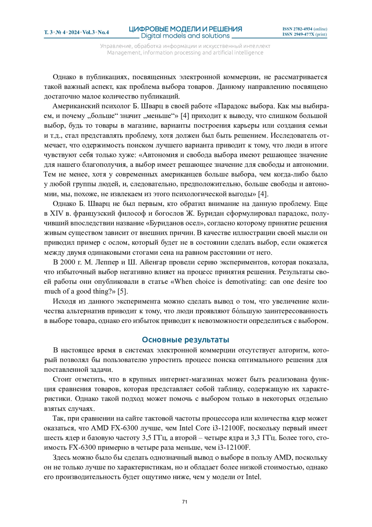 5. Iyengar S.S., Lepper M.R. When choice is demotivating: can one desire too much of a good thing? // Journal of Personality and Social Psychology. 2000. Vol. 79, iss. 6. P. 995-1006. DOI: 10.1037//0022-3514.79.6.995 EDN: GXUDON