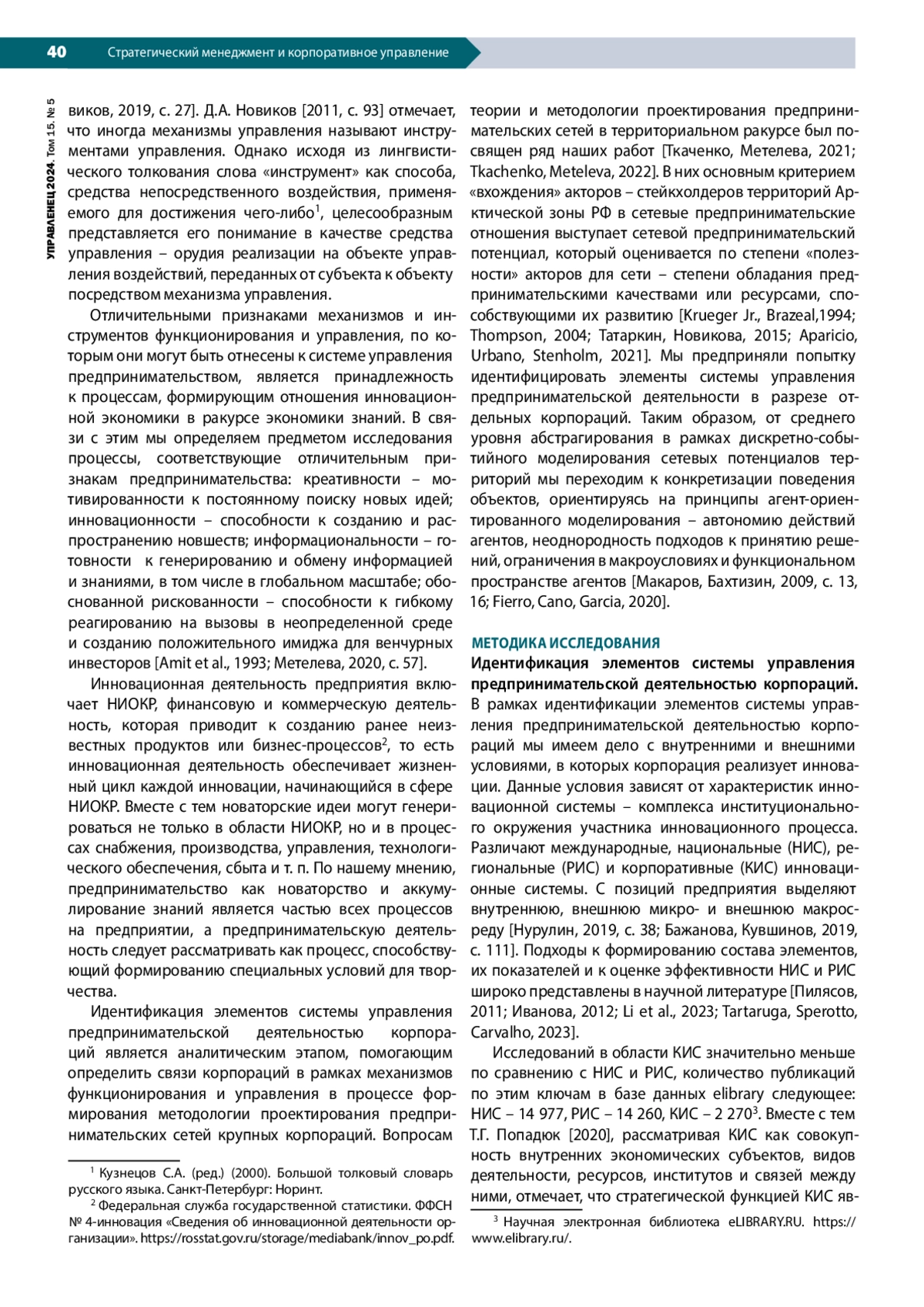 34. Tkachenko I.N., Metelevа M.A. (2022). Virtual entrepreneurial networks in the Russian Arctic. Design, management, and assessment of network entrepreneurial potential. In: The Handbook of the Arctic. A Broad and Comprehensive Overview (pp. 1123-1148). Palgrave Macmillan. Springer Nature Singapore Pte Ltd. DOI: 10.1007/978-981-16-9250-5