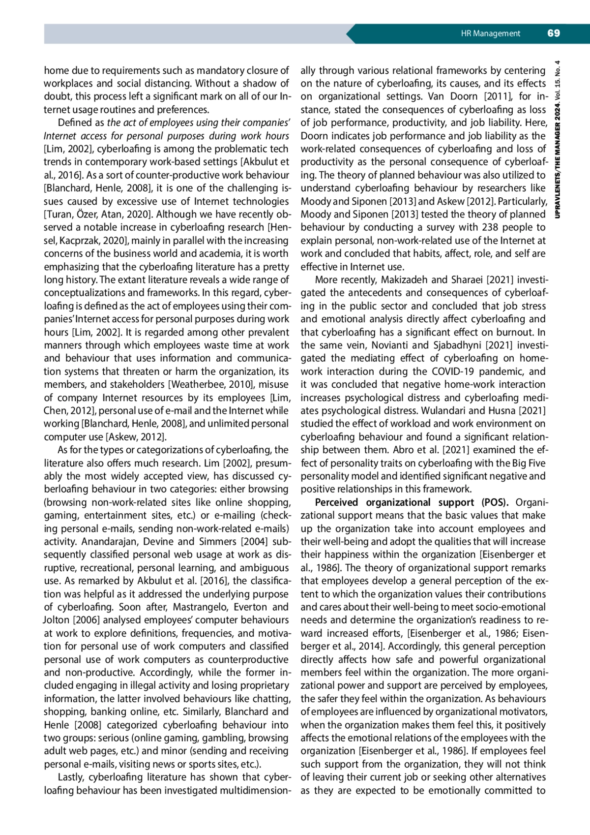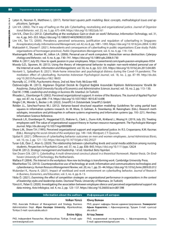 36. Lim V.K. (2002). The it way of loafing on the job: Cyberloafing, neutralizing and organizational justice. Journal of Organizational Behavior, vol. 23, no. 5, pp. 675-694. DOI: 10.1002/job.161 EDN: DVUCUL