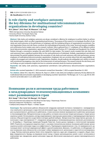 36. Jong J., Ford M. (2020). An exploration of the relationship between autonomy congruence, perceived supervisor individualized consideration, and employee outcomes. Review of Public Personnel Administration, vol. 41, issue 3, pp. 566-592. DOI: 10.1177/0734371X20917185 EDN: JCDGGU