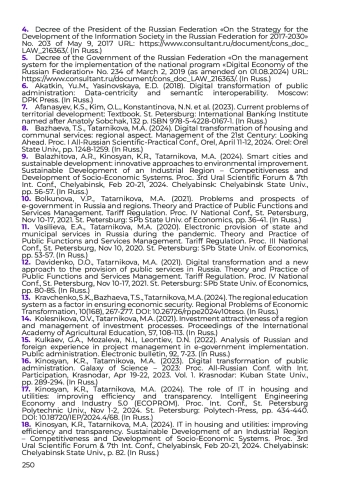 8. Бажаева Т.С., Татарникова М.А. Цифровая трансформация жилищно-коммунального комплекса: региональный аспект // Менеджмент XXI века: взгляд в перспективу: материалы I Всероссийской (национальной) научно-практической конференции, Орёл, 11-12 апреля 2024 года. Орёл: Орловский государственный университет имени И.С. Тургенева, 2024. С. 1248-1259. EDN: KTXPDS