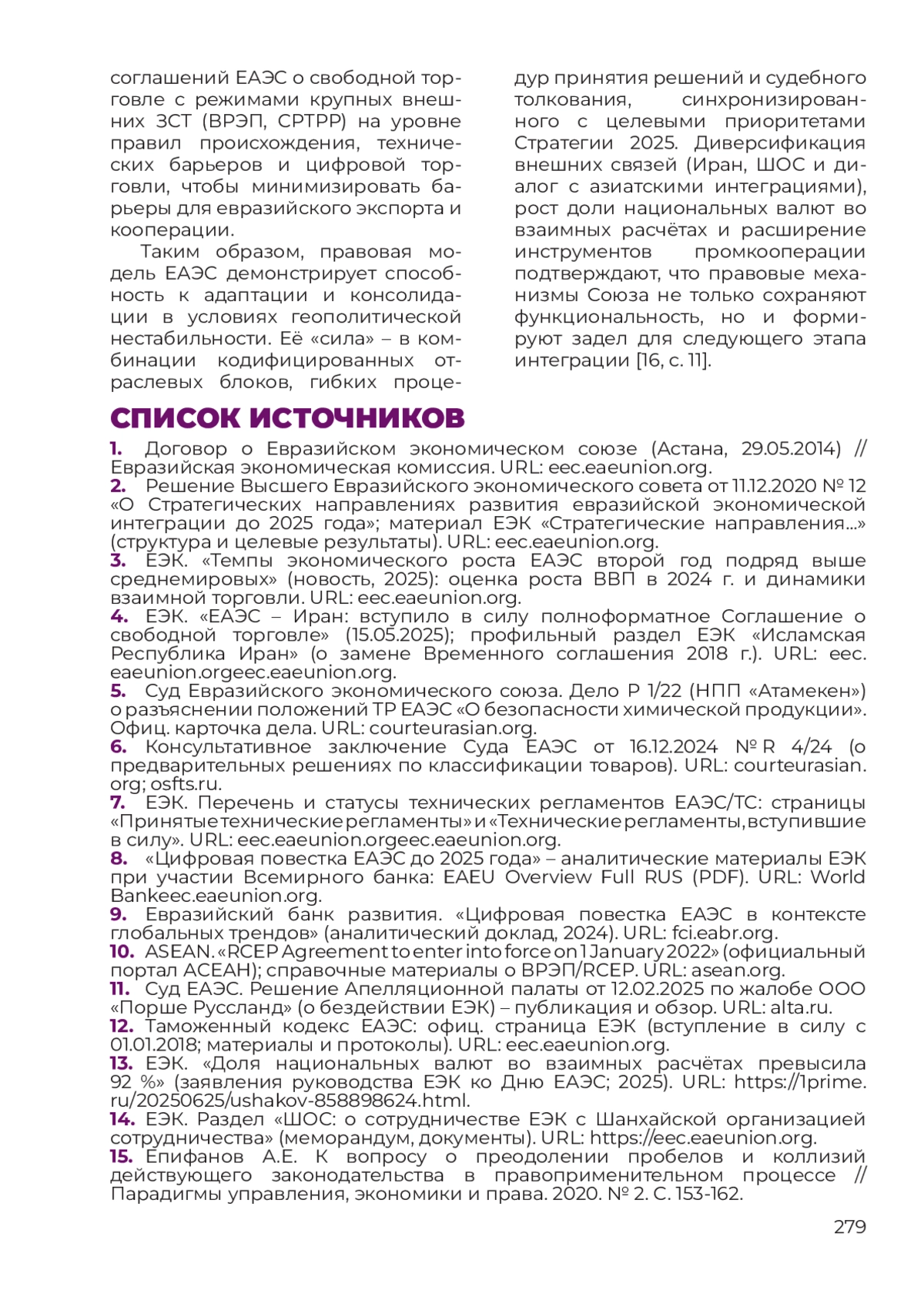 13. ЕЭК. “Доля национальных валют во взаимных расчётах превысила 92 %” (заявления руководства ЕЭК ко Дню ЕАЭС; 2025). URL: https://1prime.ru/20250625/ushakov-858898624.html.